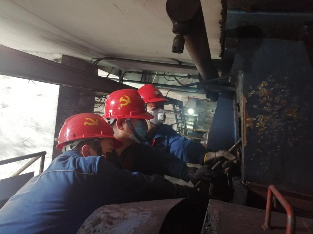 “是共產(chǎn)黨員就站出來!”班長朱干文話音剛落,三名黨員站到他身邊。朱干文強(qiáng)調(diào):“面對(duì)新型冠狀病毒,各條戰(zhàn)線上的共產(chǎn)黨員不畏艱險(xiǎn),沖鋒在前,我們要向他們學(xué)習(xí)。在我們面前,要疏通這堵塞蓬煤的萬噸原煤倉,穩(wěn)定原煤供應(yīng),保證精煤洗選,大家有沒有信心?”三人齊聲說“有!”