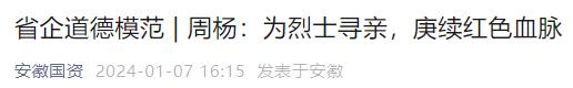 周楊,文史研究者,志愿文物保護(hù)員,無償獻(xiàn)血和造血干細(xì)胞捐獻(xiàn)登記志愿者,神源煤化工有限公司志愿服務(wù)隊(duì)負(fù)責(zé)人。先后獲得全國(guó)無償獻(xiàn)血奉獻(xiàn)獎(jiǎng)金獎(jiǎng)、“中國(guó)好人”“安徽好人”、2022年度“心動(dòng)安徽,最美人物”、安徽省“月評(píng)十佳”學(xué)雷鋒志愿服務(wù)優(yōu)秀個(gè)人典型、安徽省學(xué)雷鋒“十佳志愿者”、“淮北好人”、淮北市道德模范等多項(xiàng)殊榮。