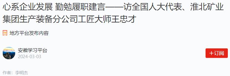 ——訪全國(guó)人大代表、淮北礦業(yè)集團(tuán)生產(chǎn)裝備分公司工匠大師王忠才