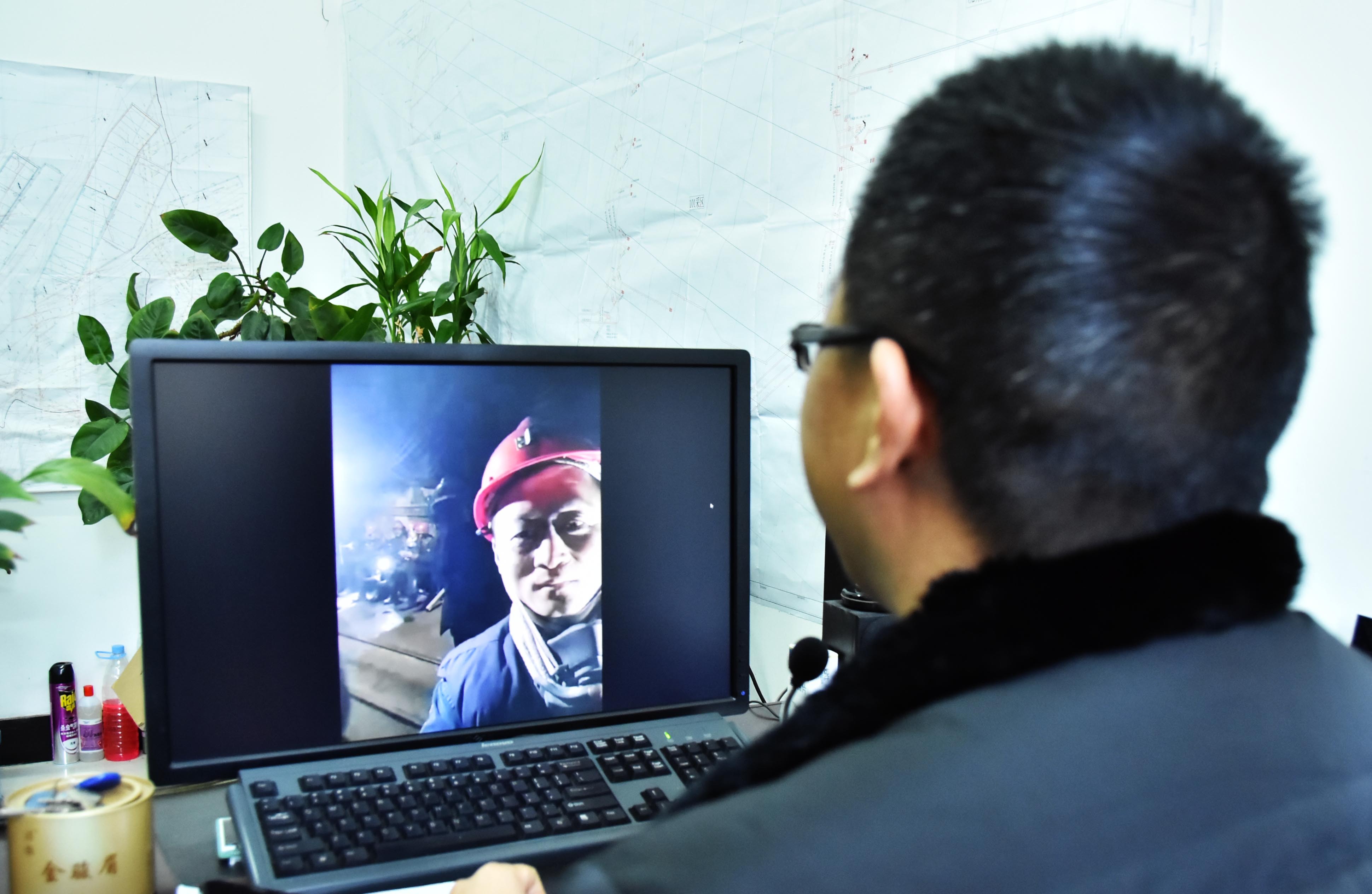 淮北礦業集團管理人員在地面通過單兵裝備與井下工作人員視頻連線